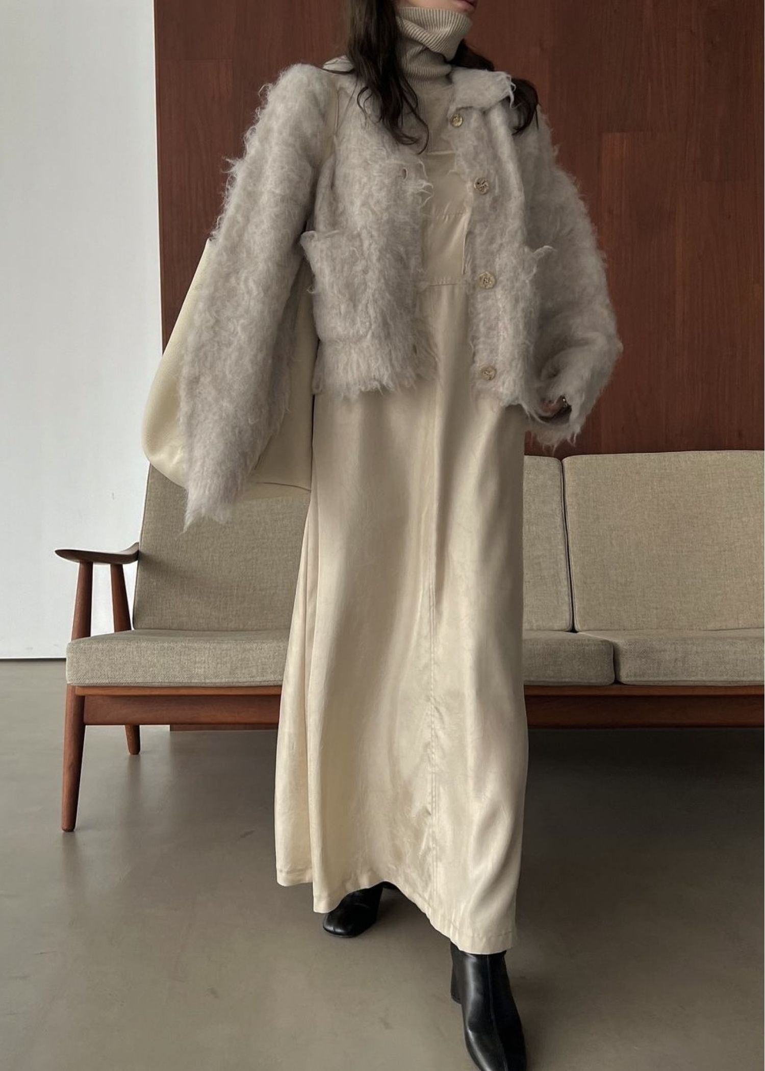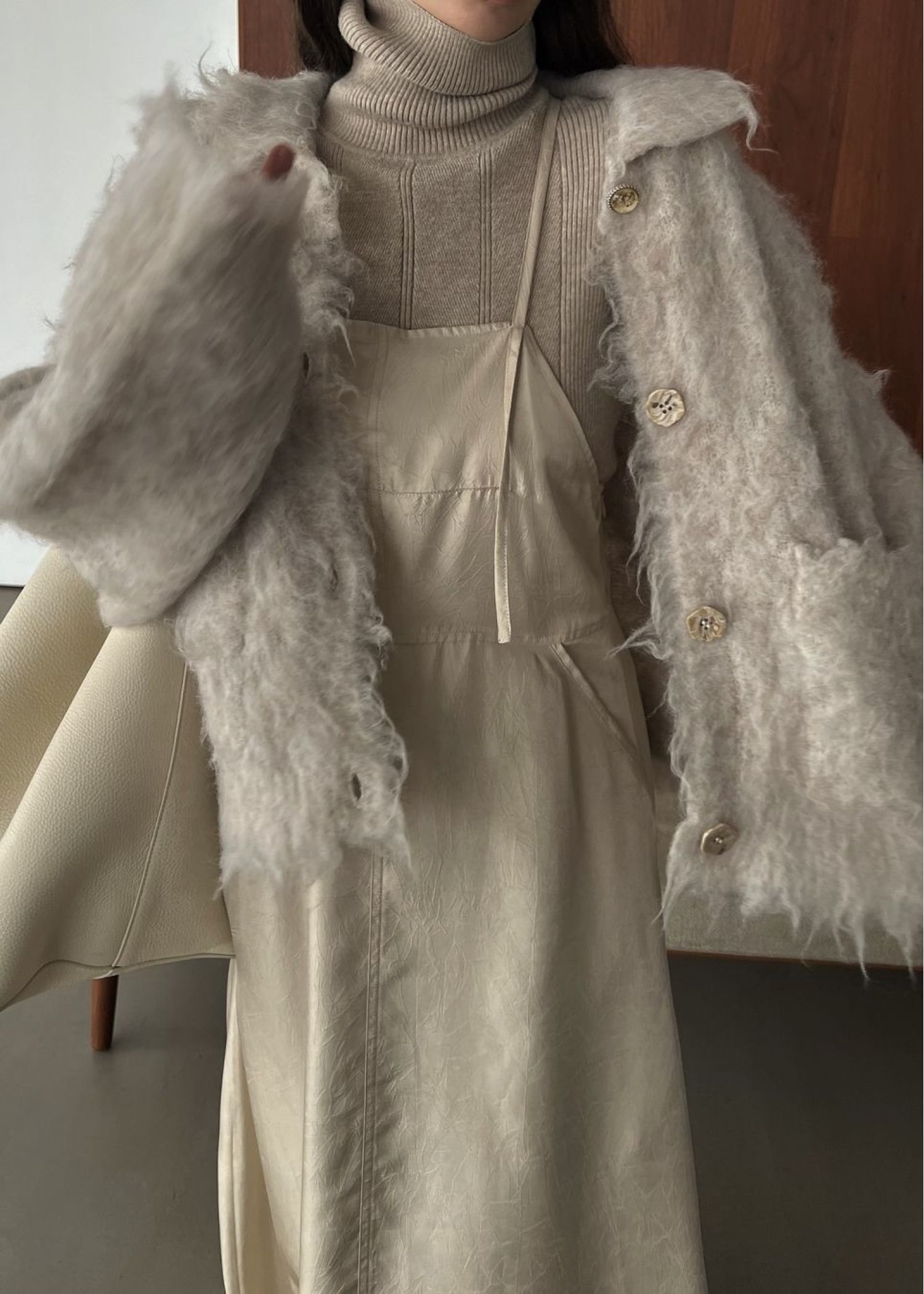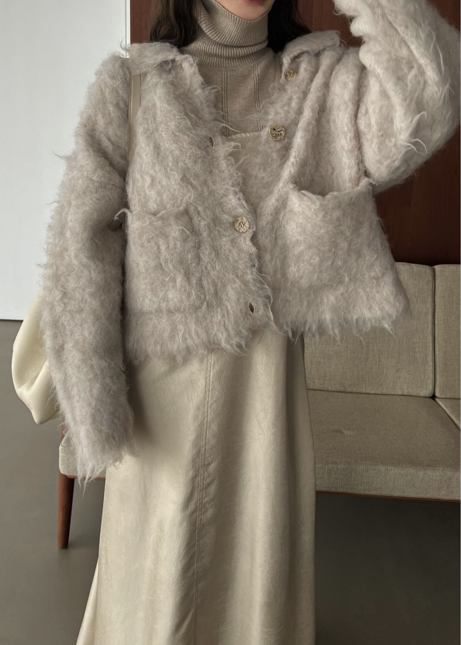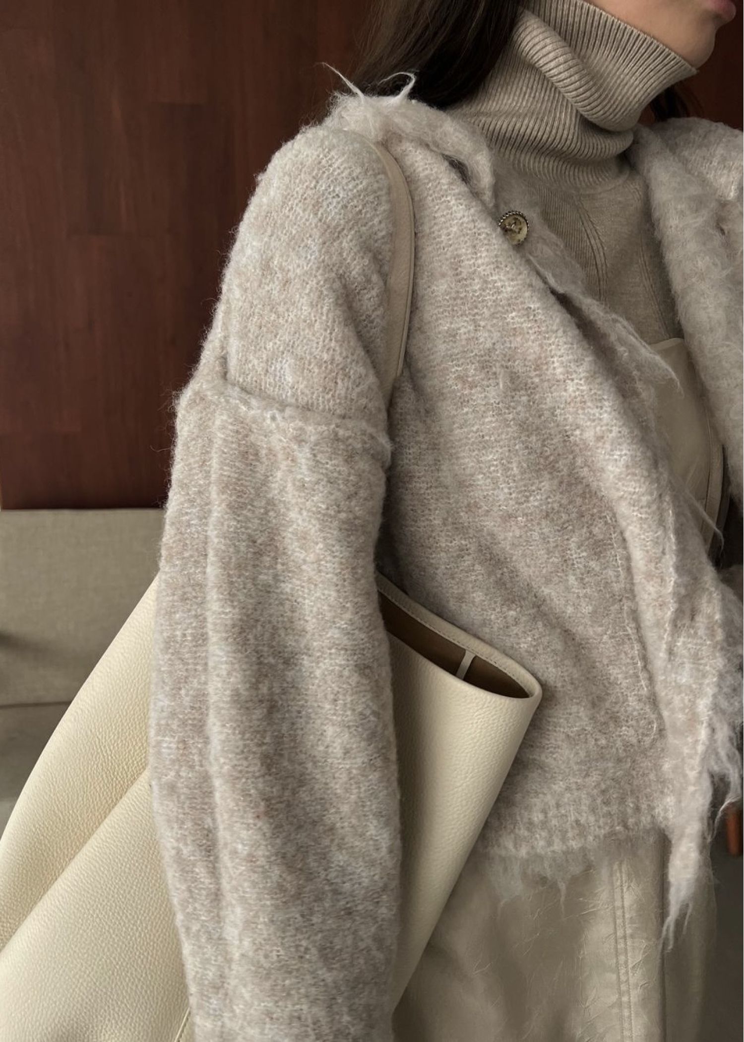 reversible brushed lightly knit cardigan