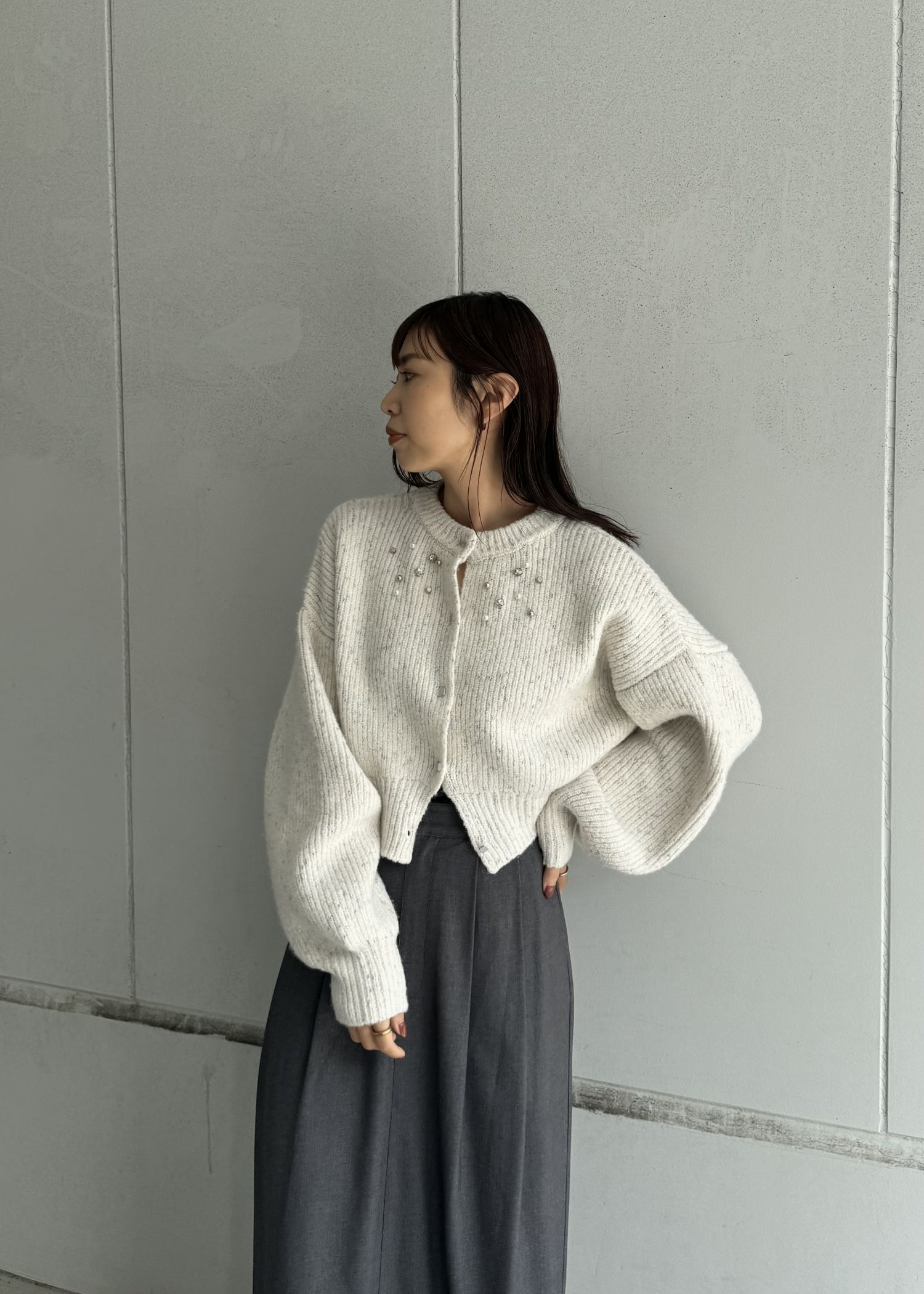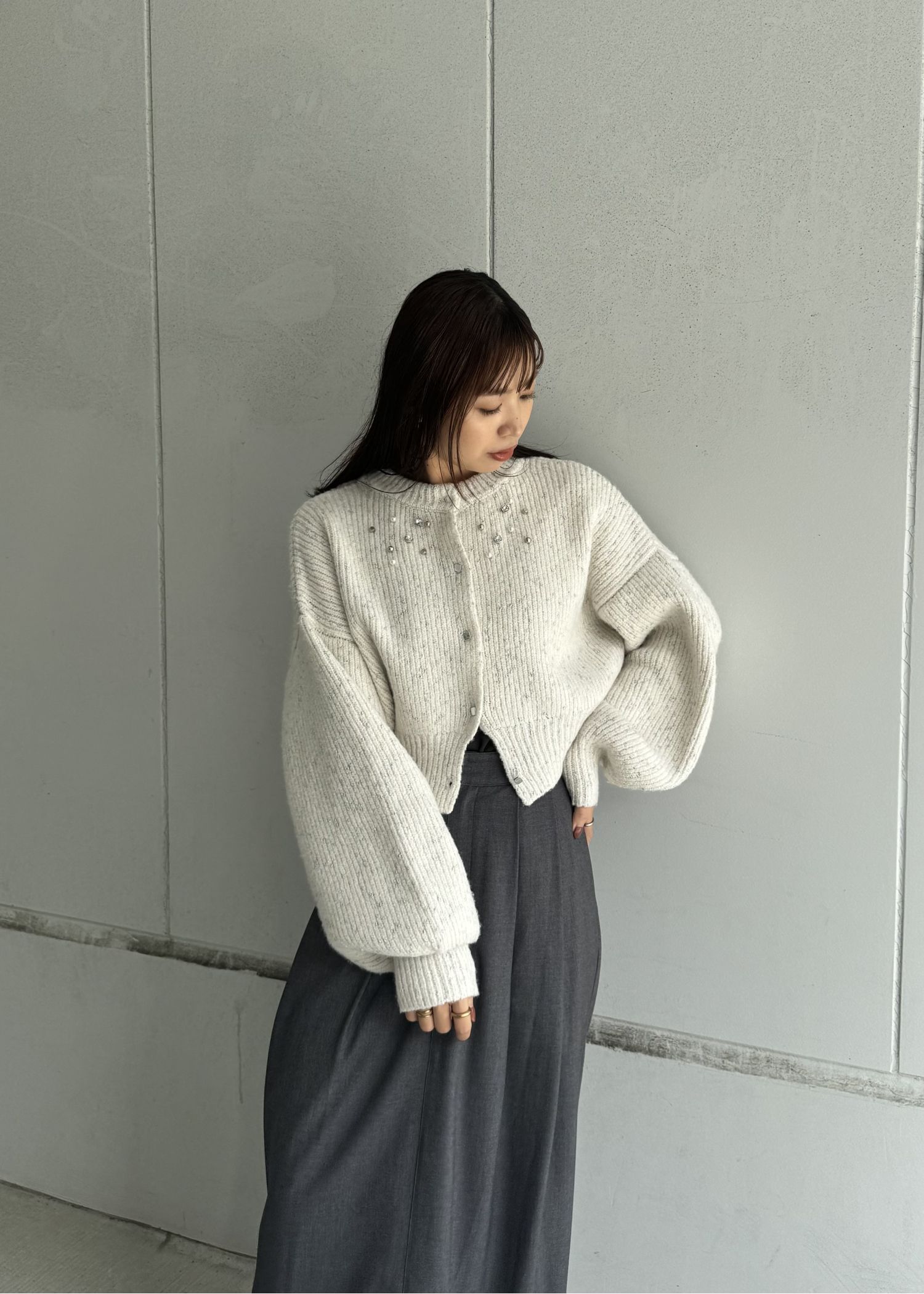 silver yarn studs bijou volume sleeve knit