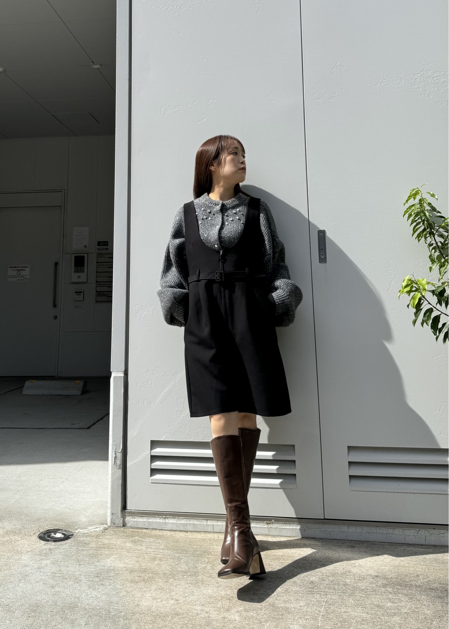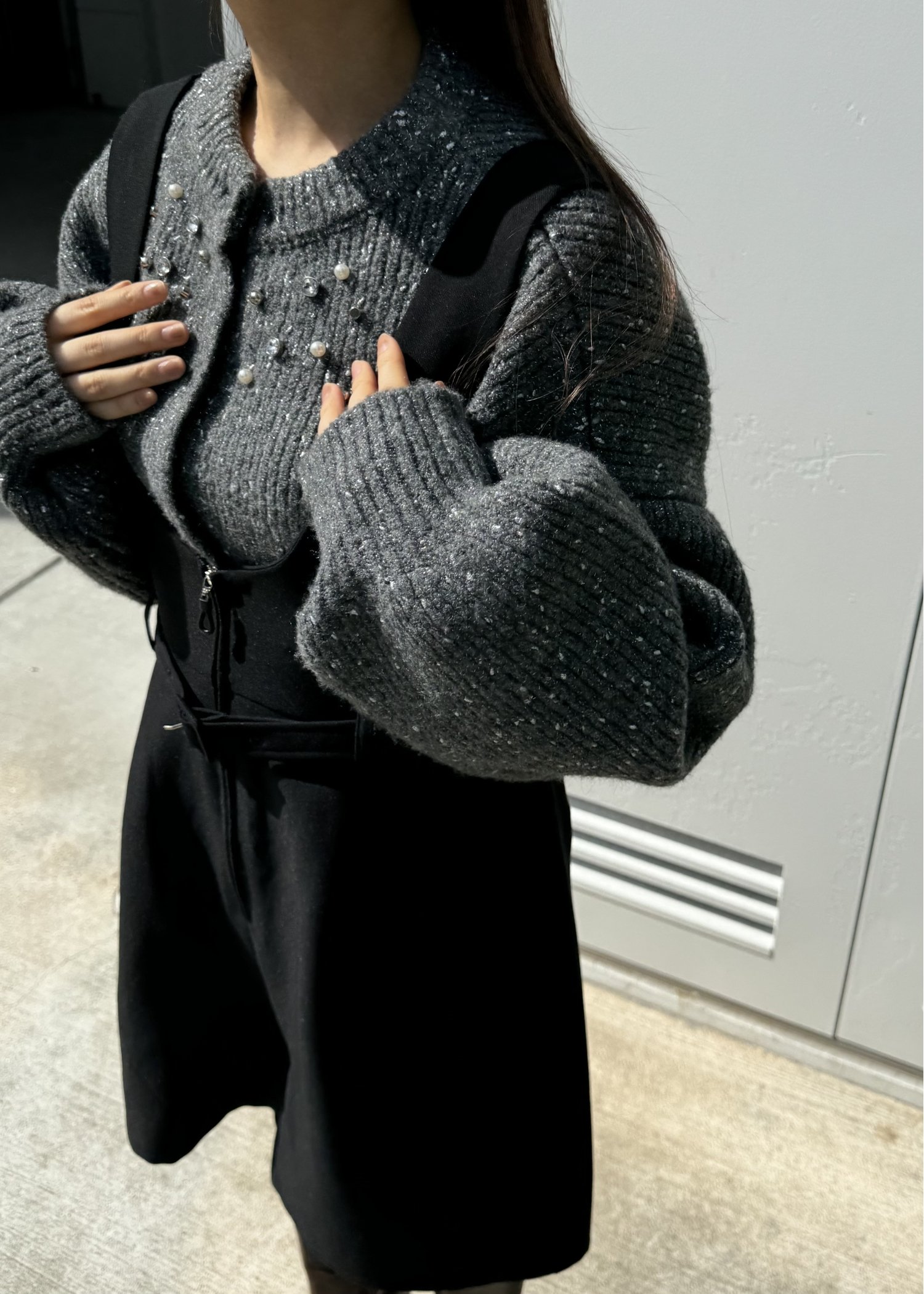 silver yarn studs bijou volume sleeve knit