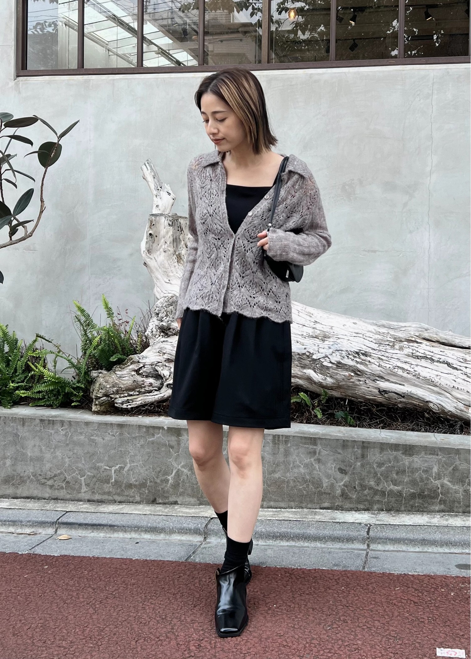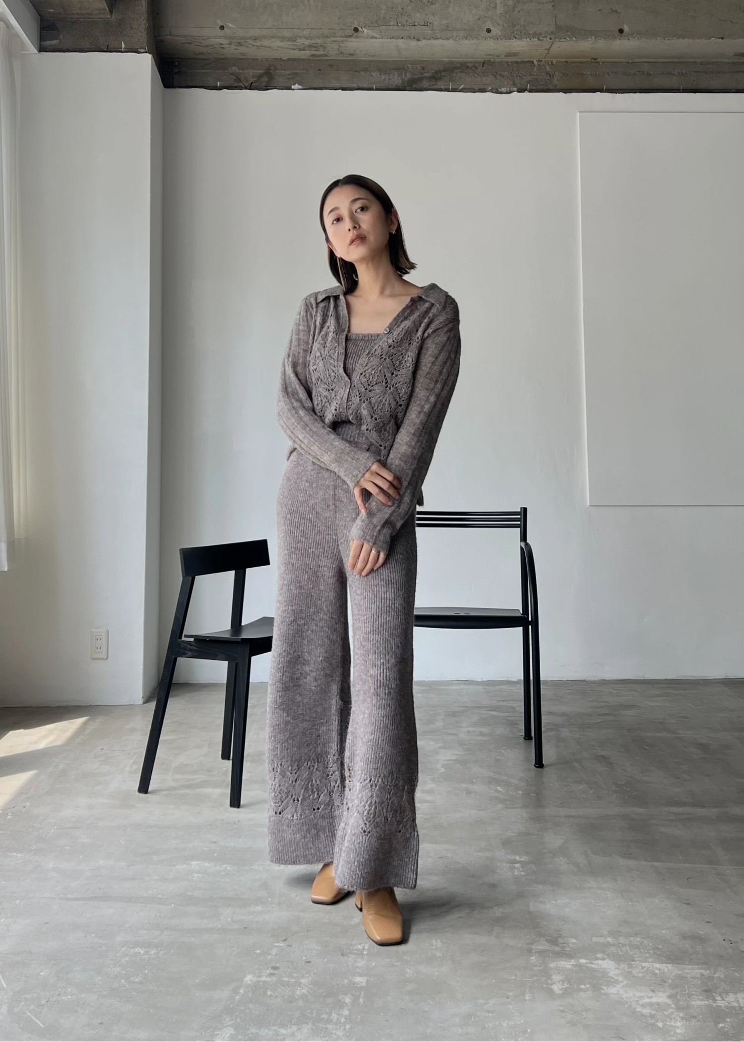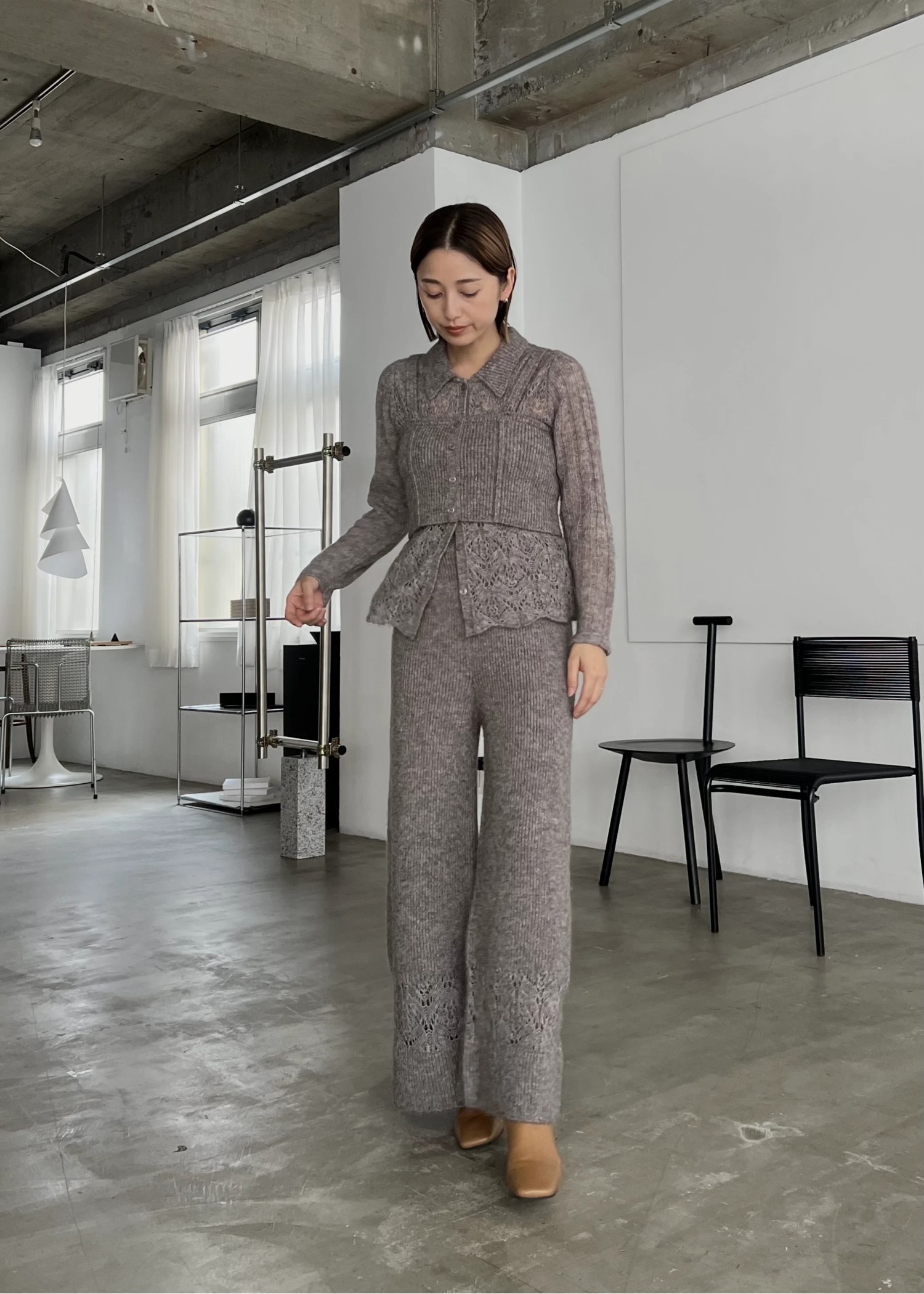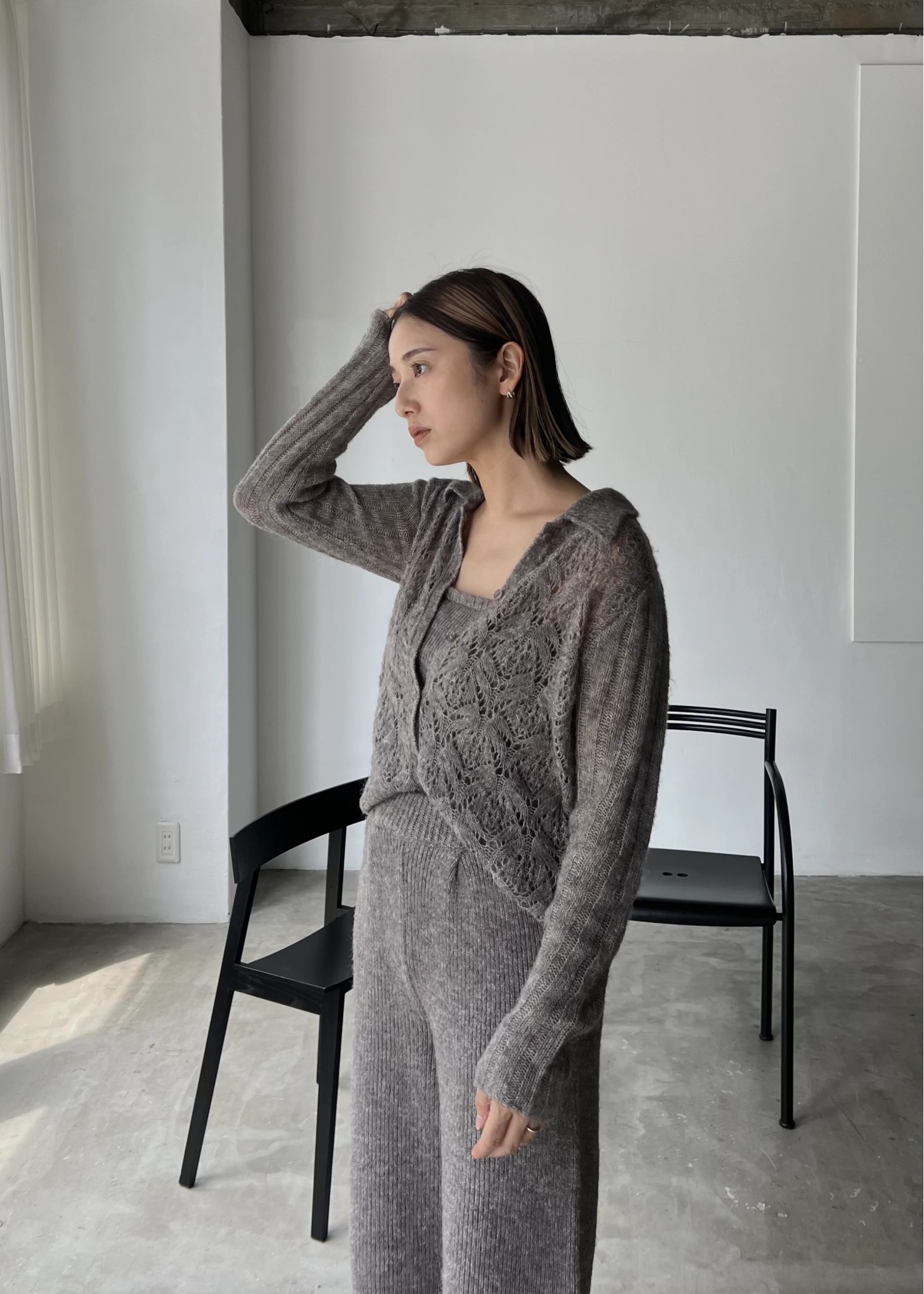 switching hem sheer crochet knit PT