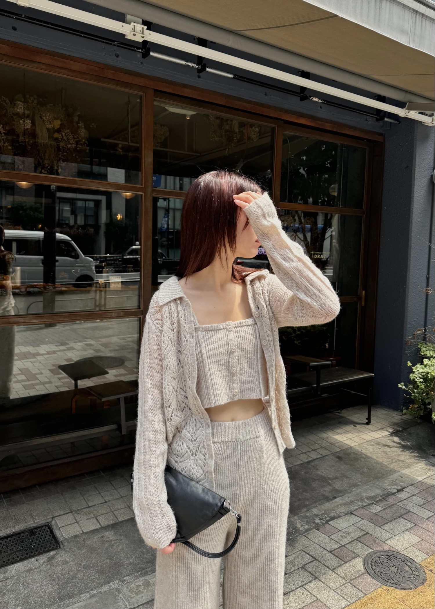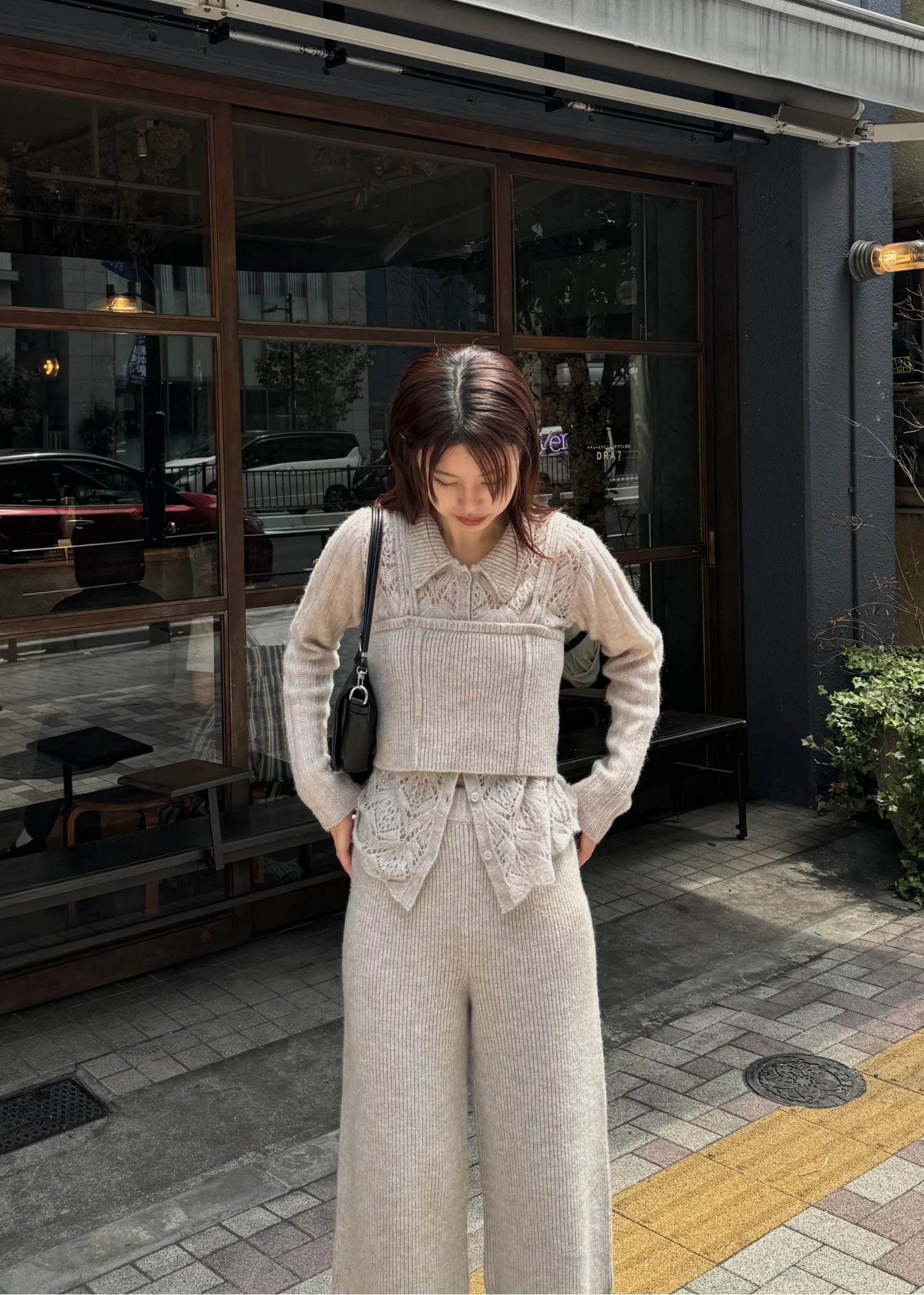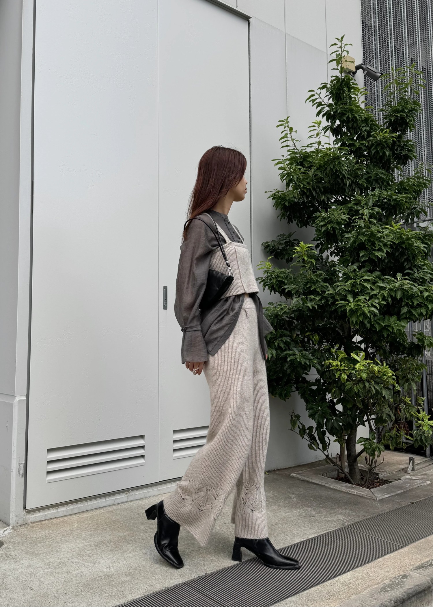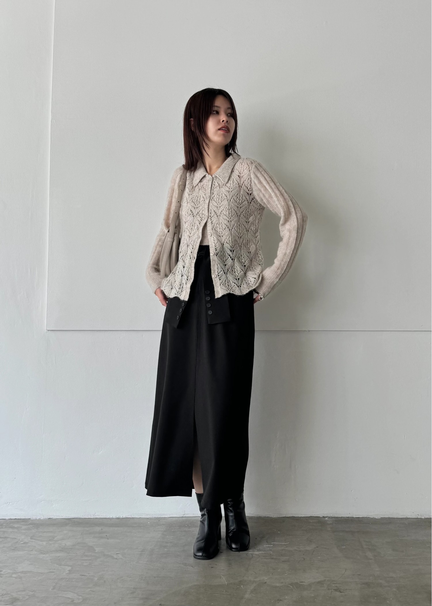 switching hem sheer crochet knit PT