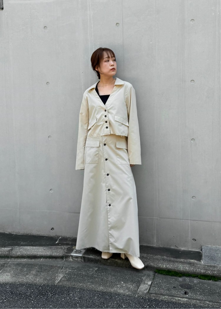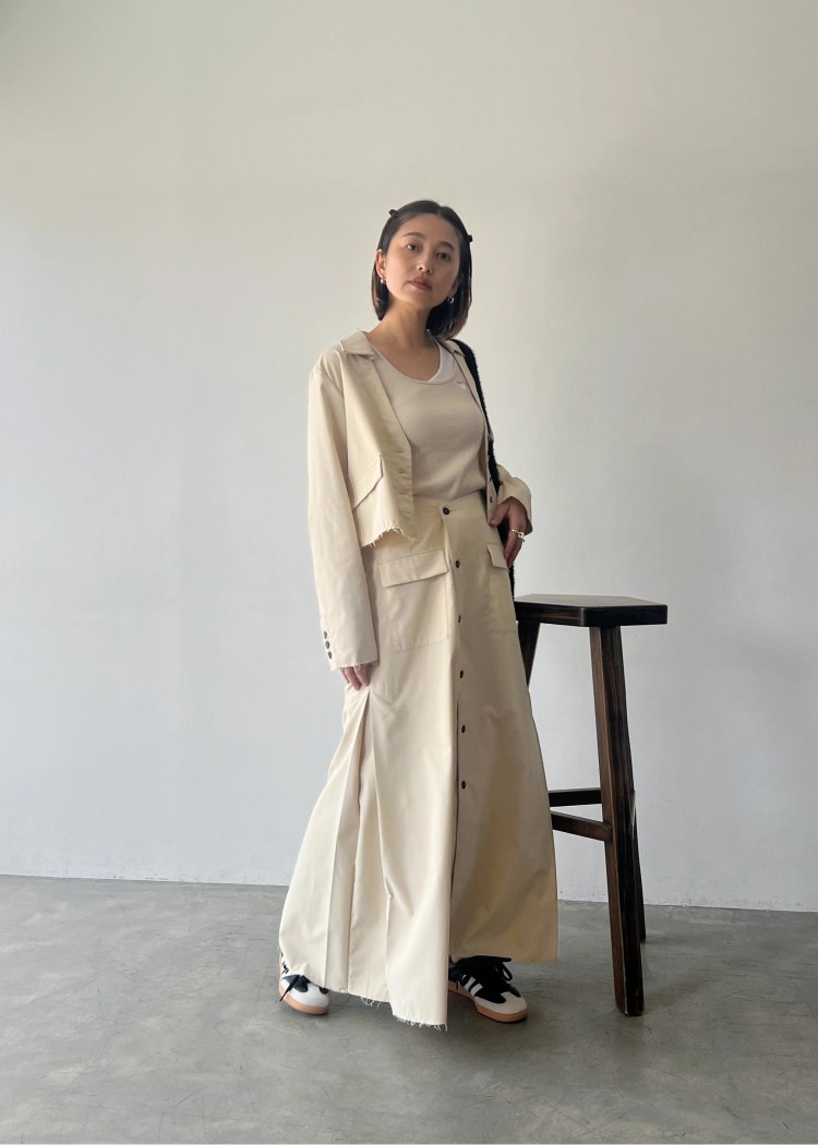 ・サイドにタックを施したラップ風スカート