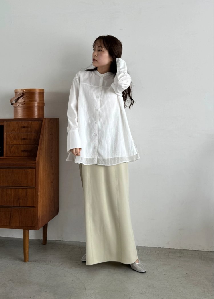 シャツやブラウスをレイヤードしていただくスタイリングもおすすめ
