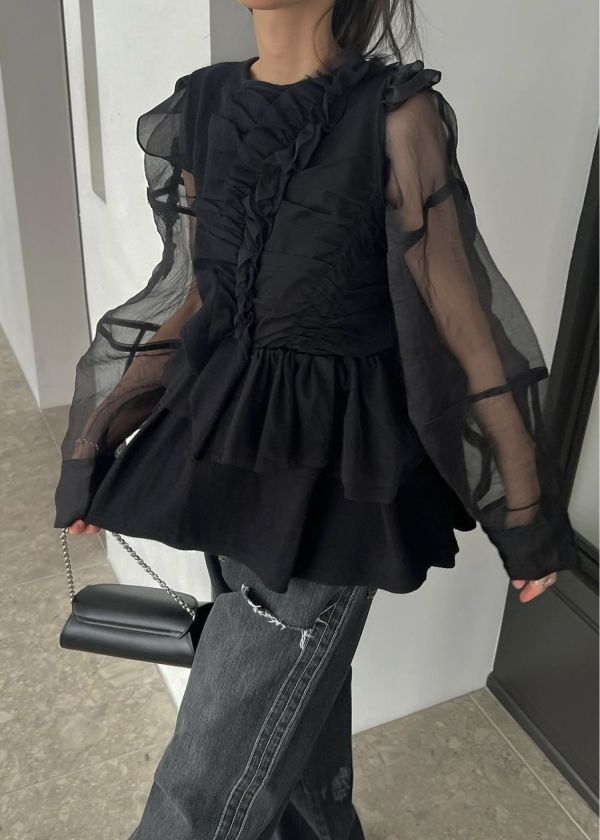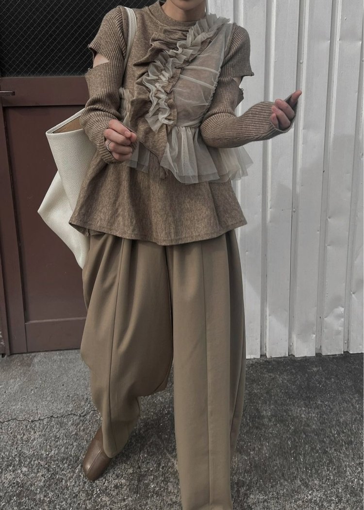 ・ニットとチュールのドキングギャザーフリルニット