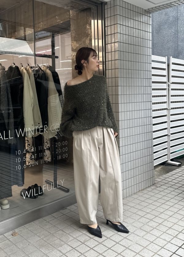 ・ゆったりとしたコクーンシルエットが足回りをカバーしつつ、