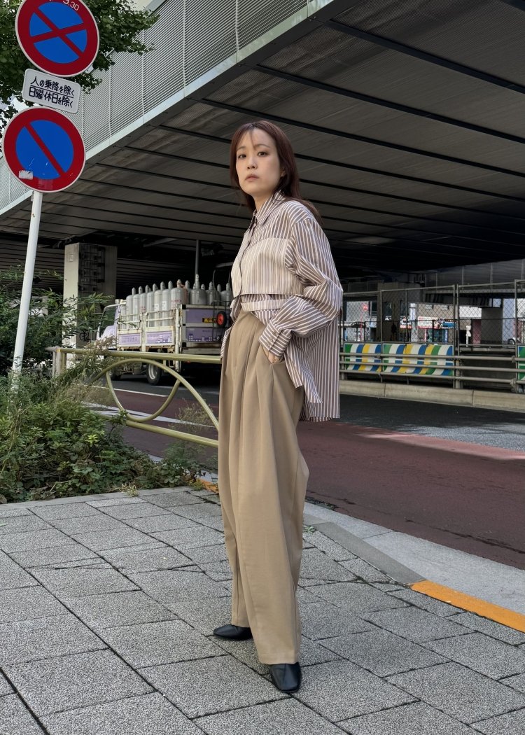 シンプルなアイテムと合わせても、履くだけで抜け感のある印象に