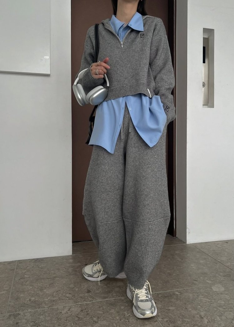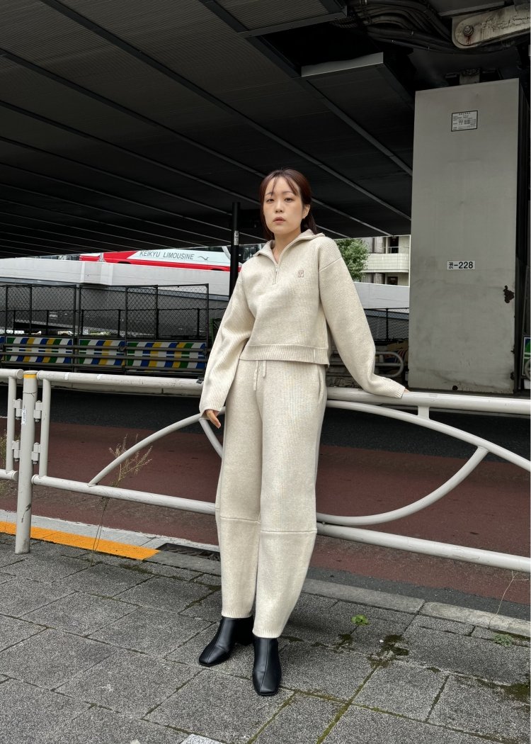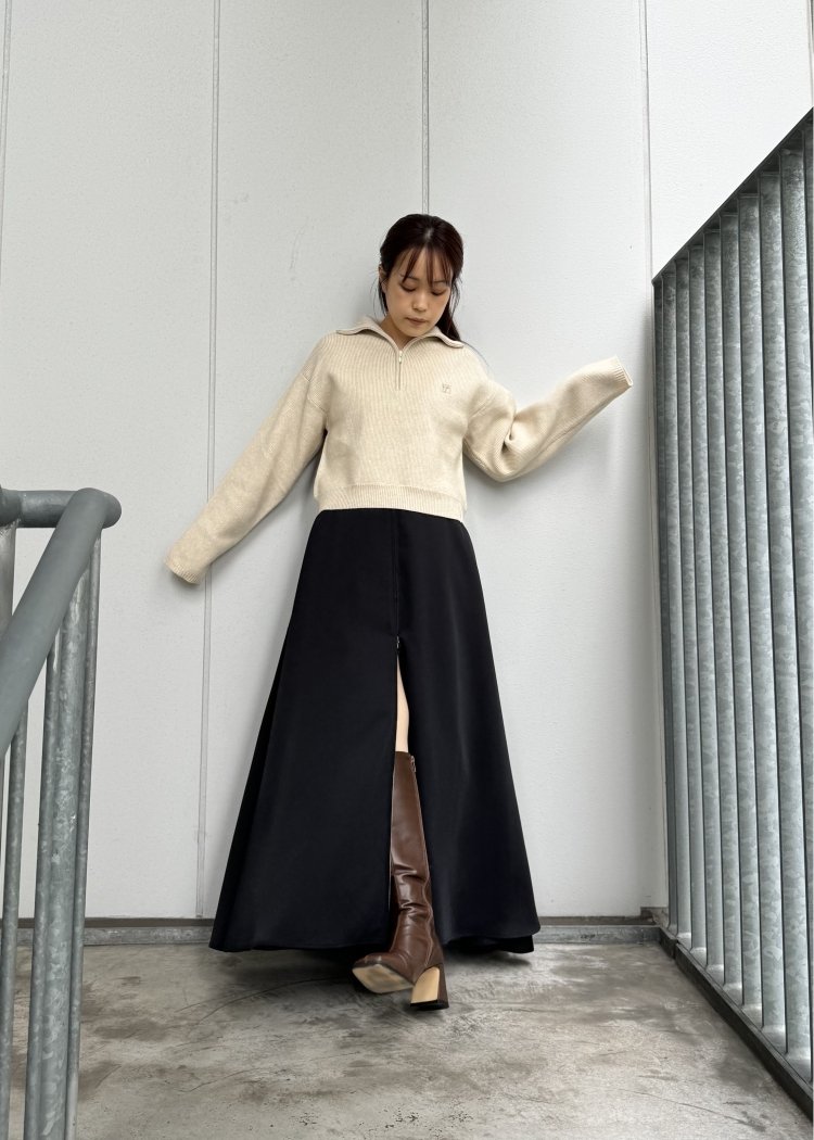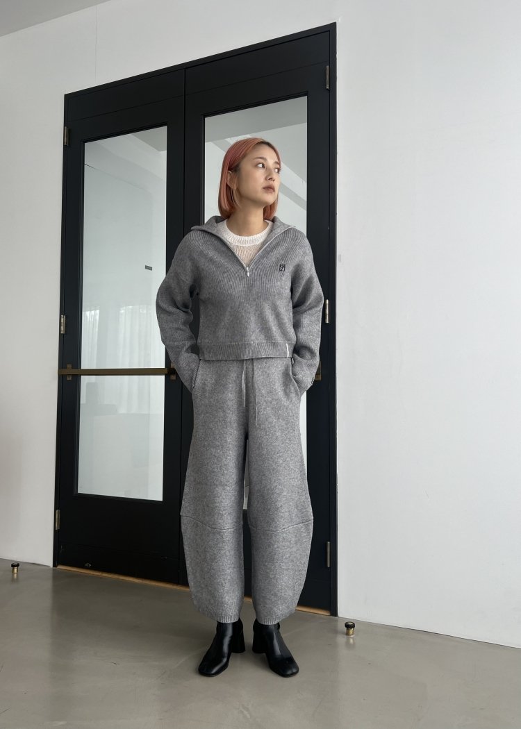 ・クロップド丈のハーフジップニット