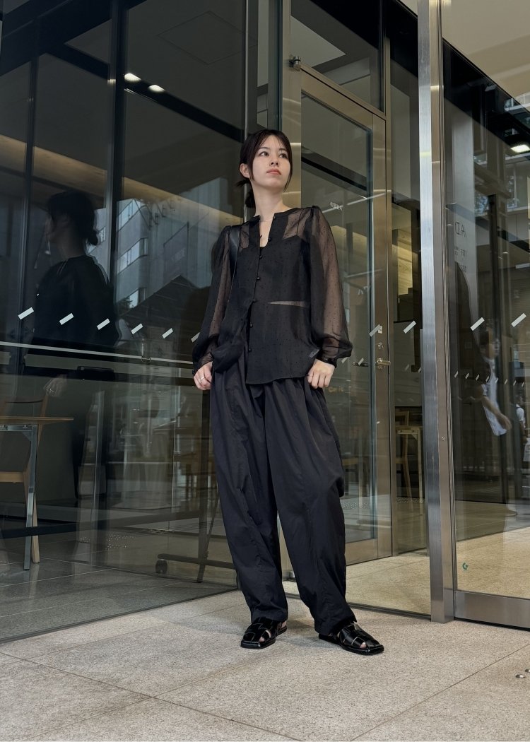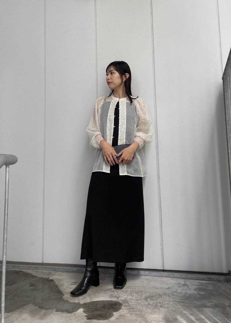 ・ボリュームスリーブがキャッチーなフロッキーシアードットのブラウス