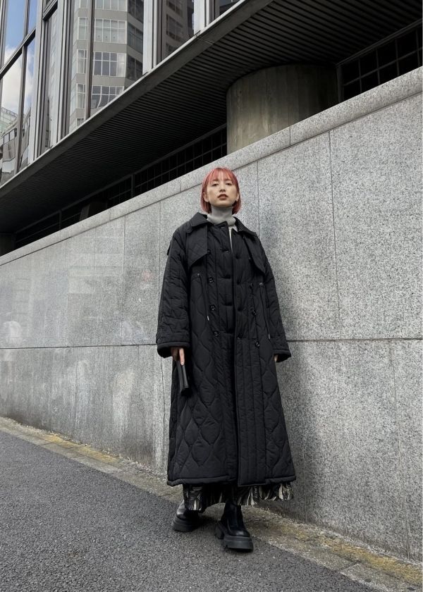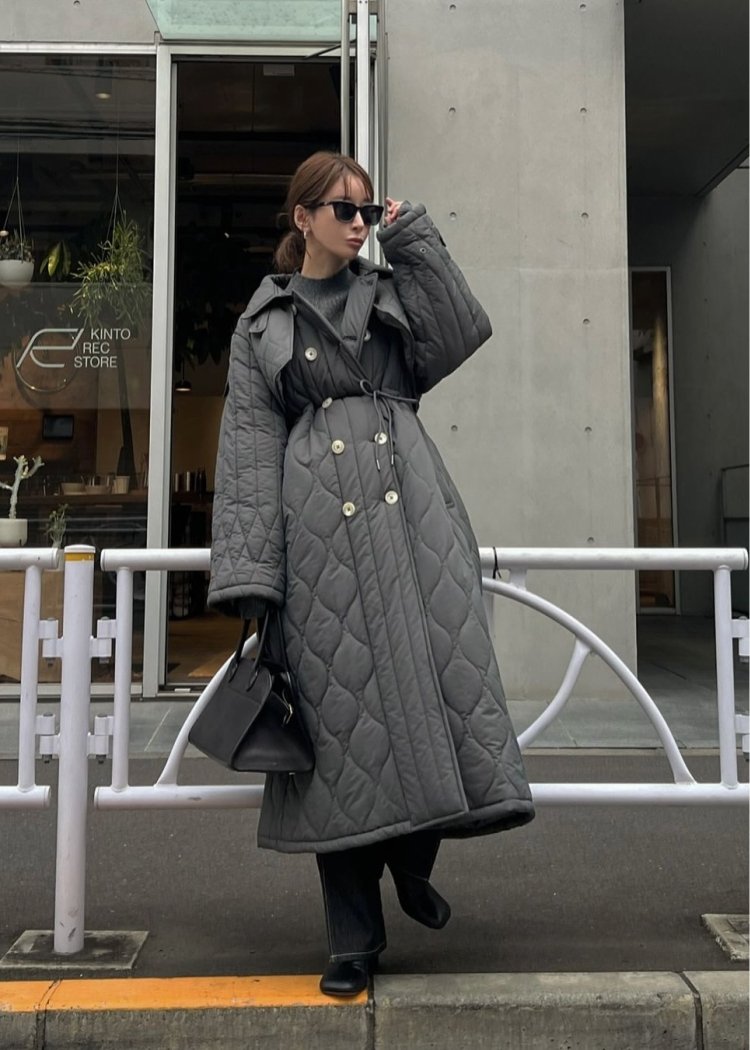 ・立体感のあるロングシルエットと柄の違うキルティングデザインで