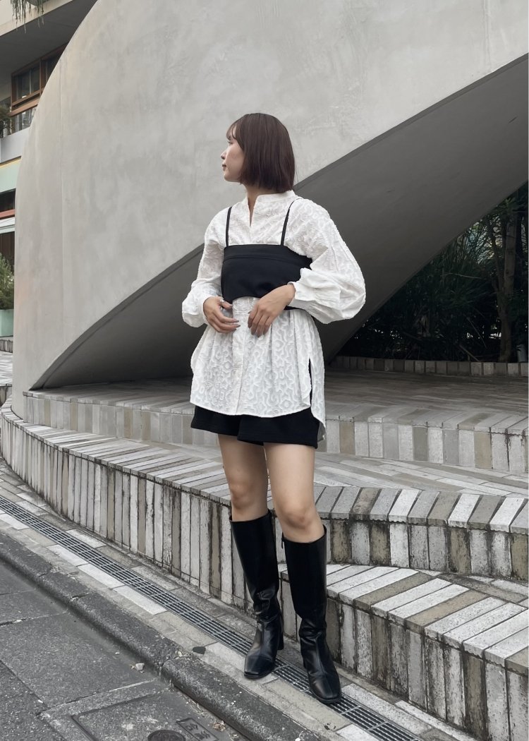 ・前ボタンは全て開けて羽織りとして抜け感を出しても◎