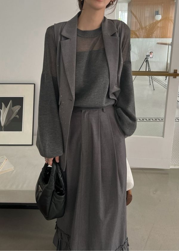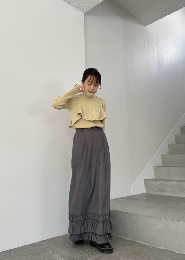 ※volume tuck sleeve no collar JKとhem frill tuck pencil SKは同じ素材になります。