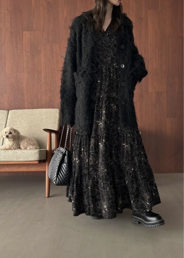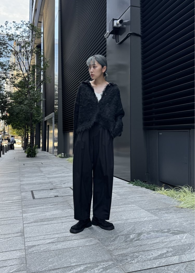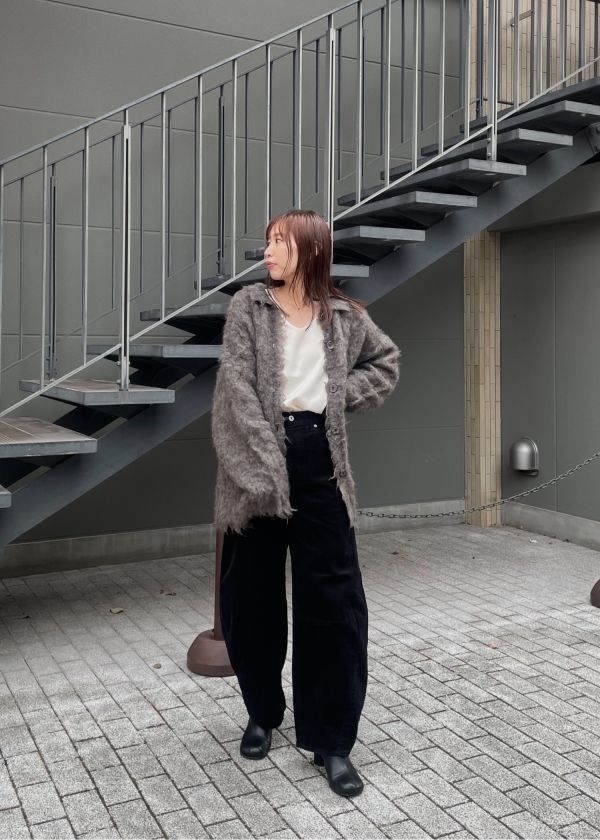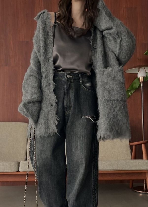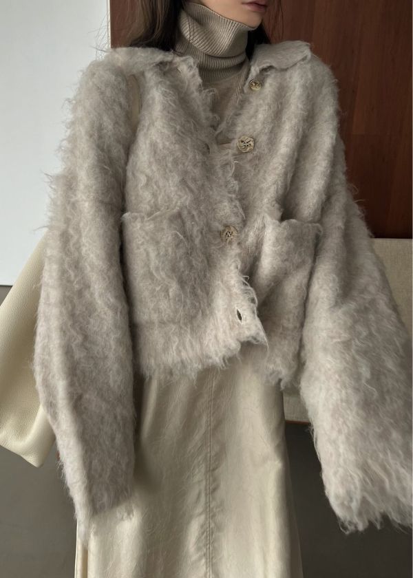 ・メランジプードルヤーンに起毛をかけた、ニットカーディガン
