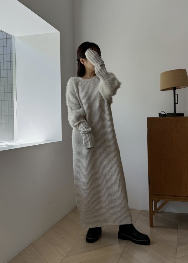 shaggy sleeve finger hole long knit op