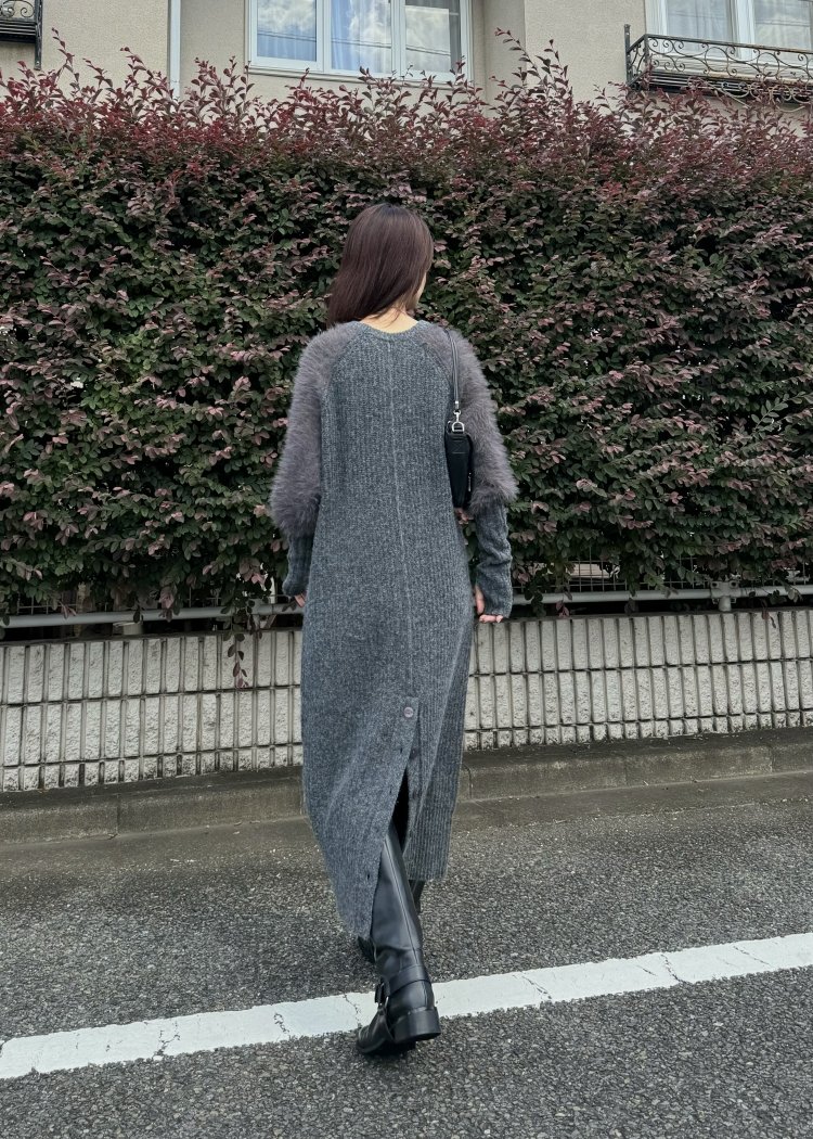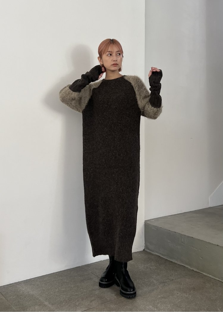 ・袖部分をシャギーにしたニットワンピース