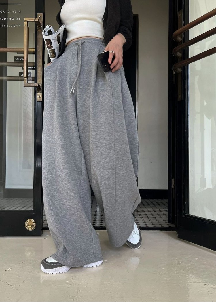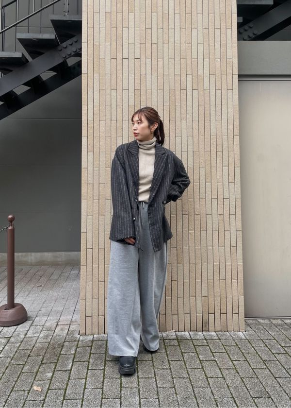・切り替えを入れ、ワイドシルエットながらに縦のラインを強調する脚長効果なデザインに