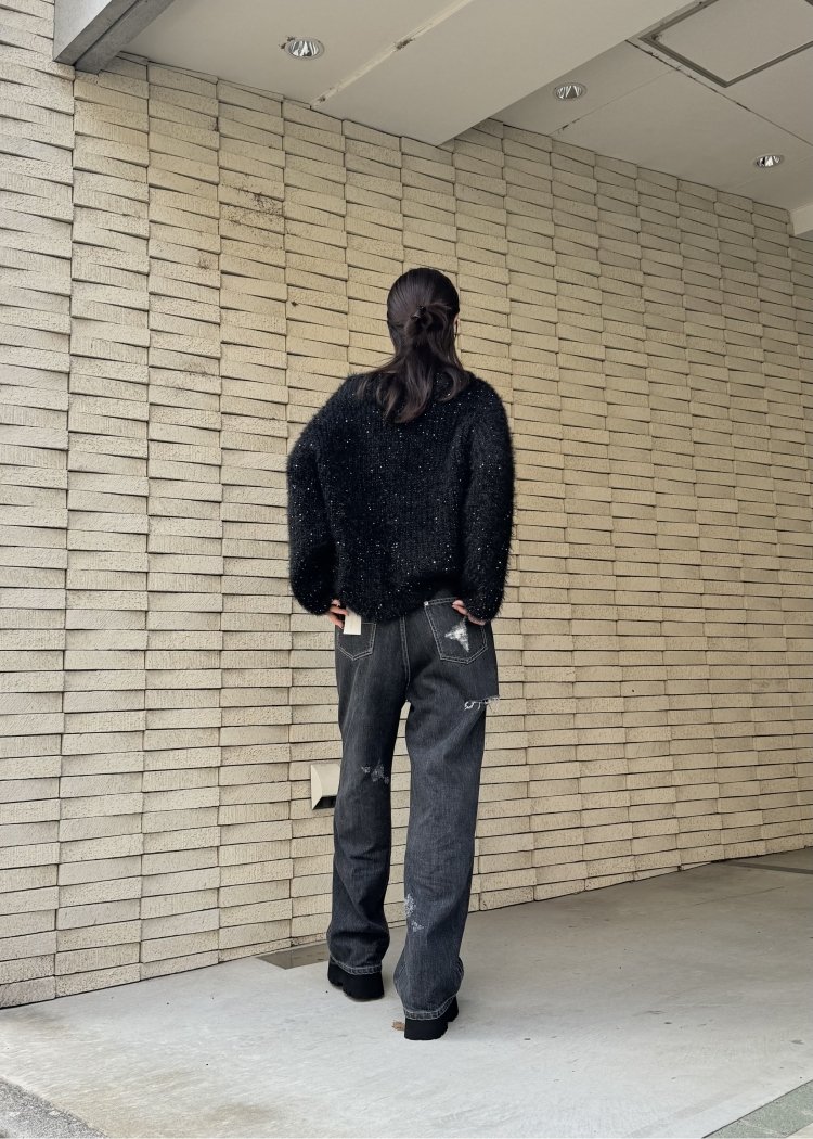 ・クラッシュ加工と切り込みで、よりカジュアル感をプラス