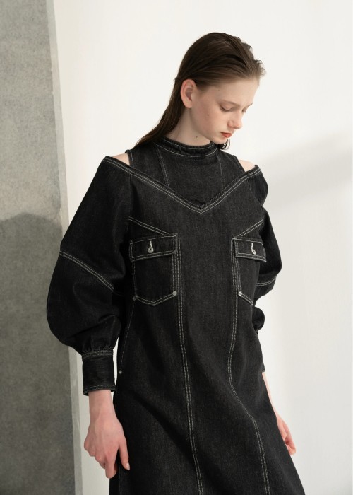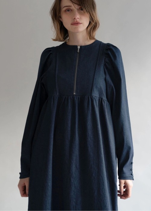 denim volume gather sleeve zip OP