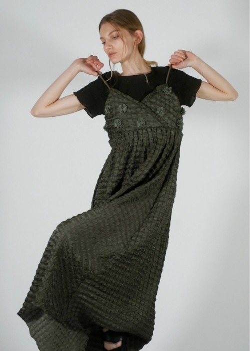 flower motif waist rubber tuck cami OP