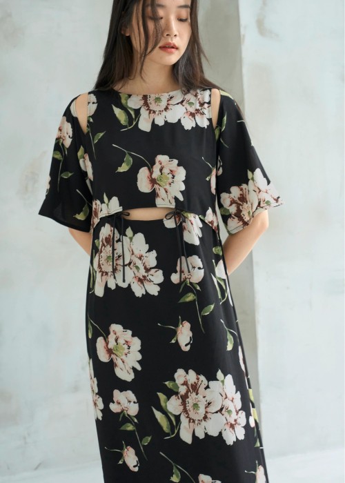 pearl shoulder camisole set original big flower print OP