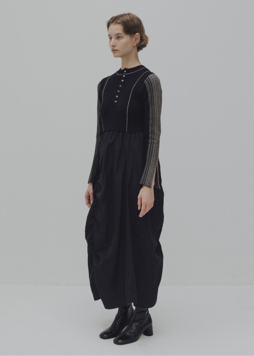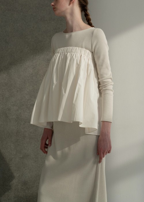 knit docking jacquard sleeve gather SK/OP