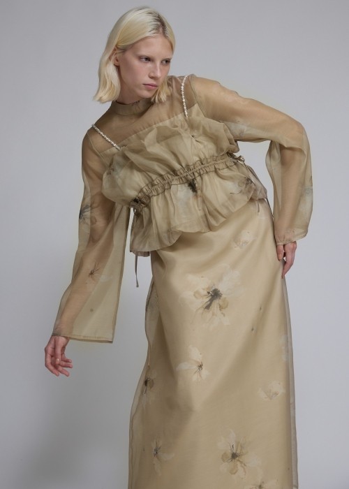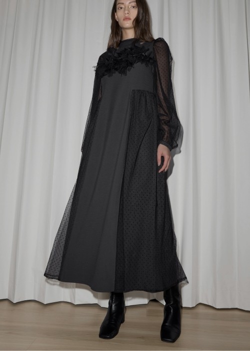layered tulle floating jacquard gather OP