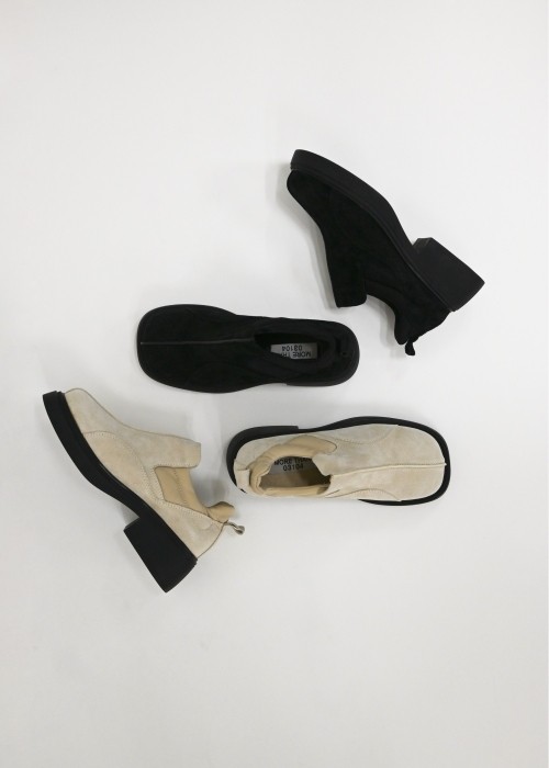 trapezoid heel basic long boots