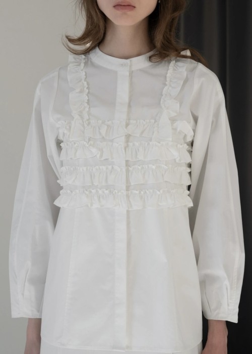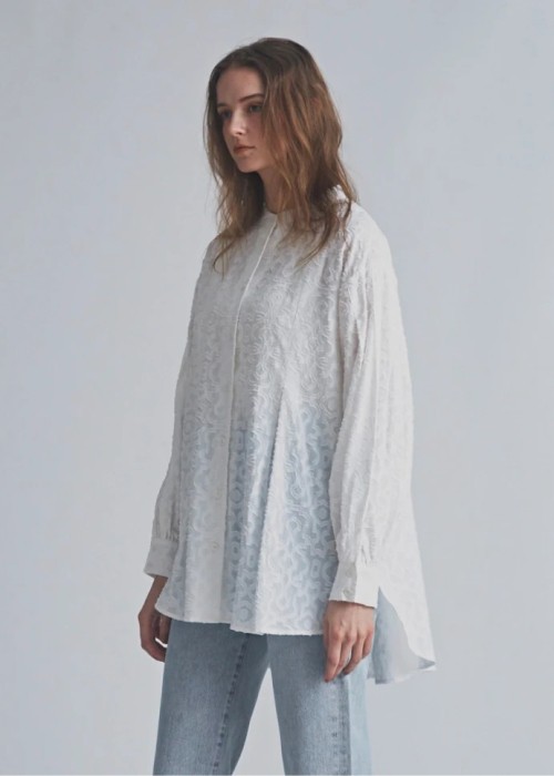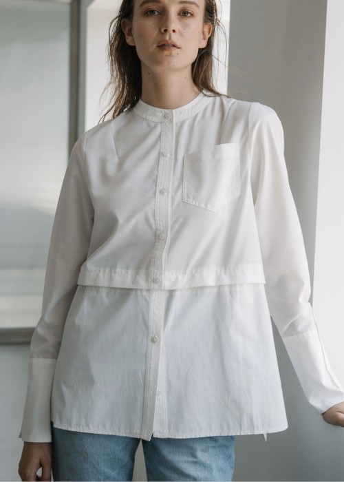 band collar round tuck flare shirt